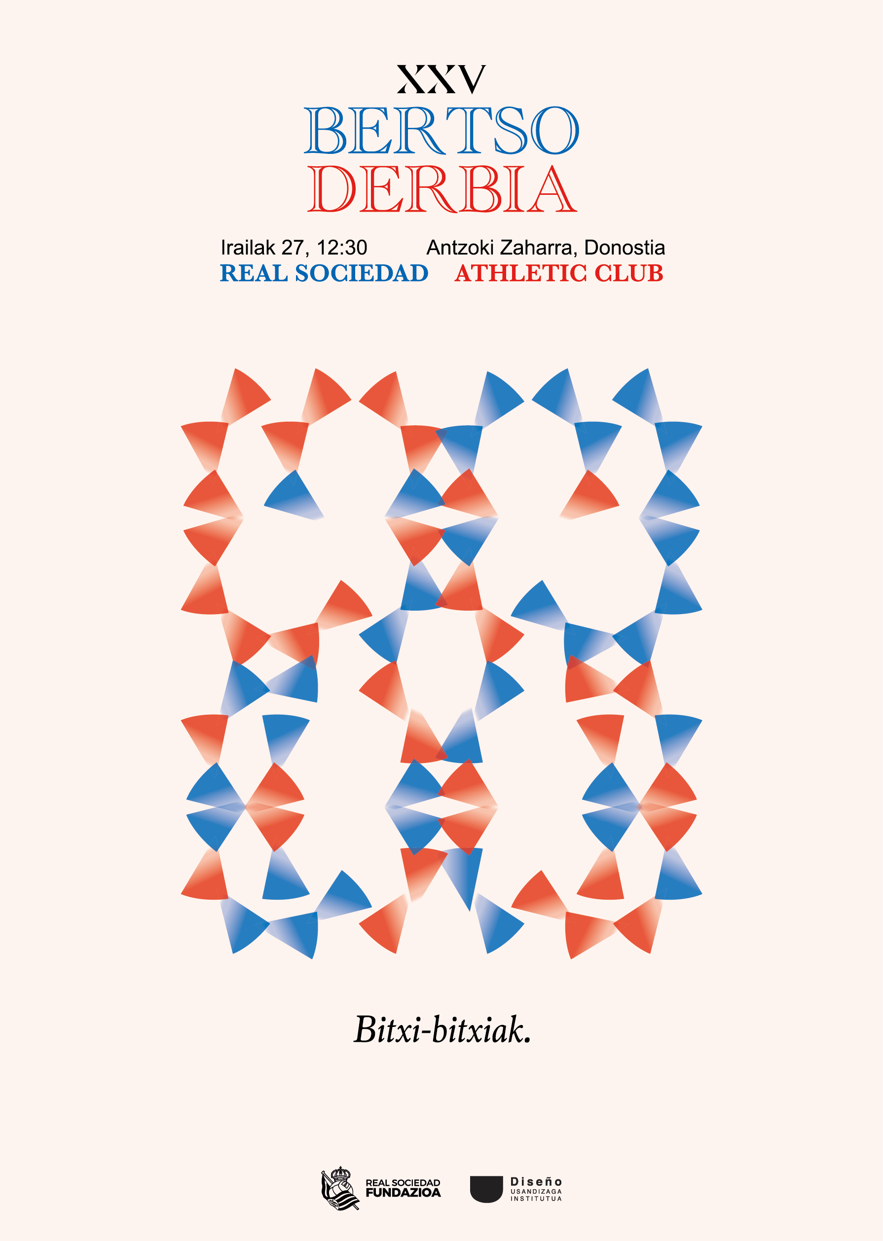 Proyecto — A25N ✦ ✧ ✦ ✧ Loading project… Bertso Derbi ClienteReal Fundazioa y Bertso Elkartea Año 2024 Proyecto Propuesta de Gráfica Las imágenes más complejas se pueden crear a partir de las formas más básicas, y a veces el mejor rival es un igual * Proyecto realizado como parte del Ciclo de Grado Superior de Gráfica Publicitaria. ◄ Proyecto anterior A25N Proyecto siguiente ► GAZTE ANTZERKI TOPAKETA
